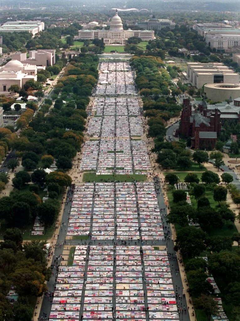 The AIDS Memorial Quilt displayed on the National Mall in Washington, DC to remember the lives lost to HIV. Photo Credit: Ron Edmonds (Associated Press 1996) and the San Francisco Chronicle